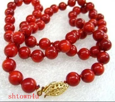 Cheap necklaces lady's women's Rare Huge 8mm beautiful red coral necklace 18 " silver-jewelry for w