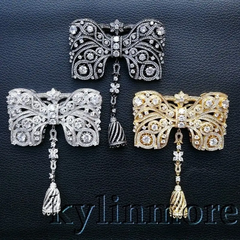 BEST CP044 1 pcs 68x90mm Mixed Color Plated Clear CZ Pave Bowknot Jewelry Pendant