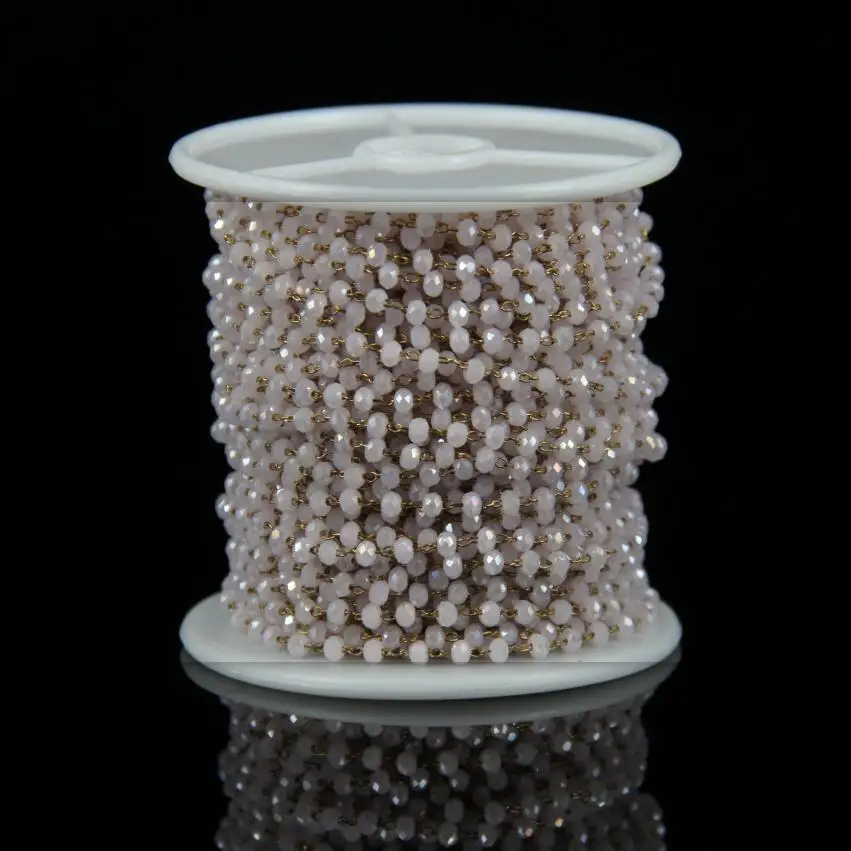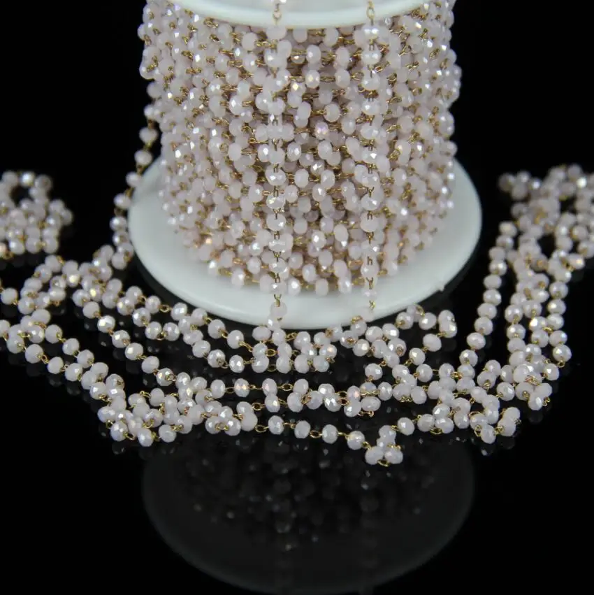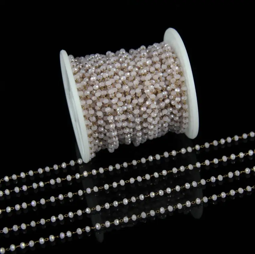 BEST QUALITY 2x3mm Small Pink AB Glass Faceted Rondelle Beaded Chains JewelryTiny Glass Beads Plated Brass Wire