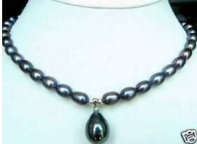 Best Quality 7-9mm Black Akoya Pearl Necklace Shell Pearl Pendant 18" AAA>Wholesale Lovely Women's Wedding Jewel