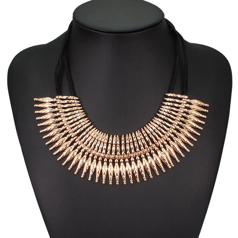 Best Quality Fashion Black Leather Metal Pendants Necklaces Women Bib Collar Simple Layered Choker Necklace Maxi