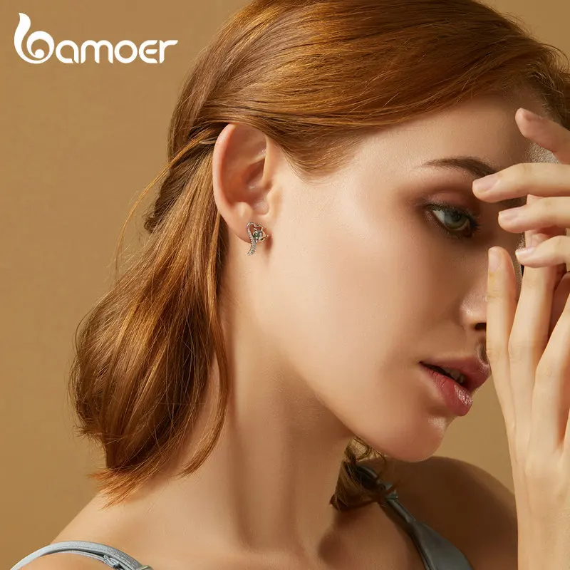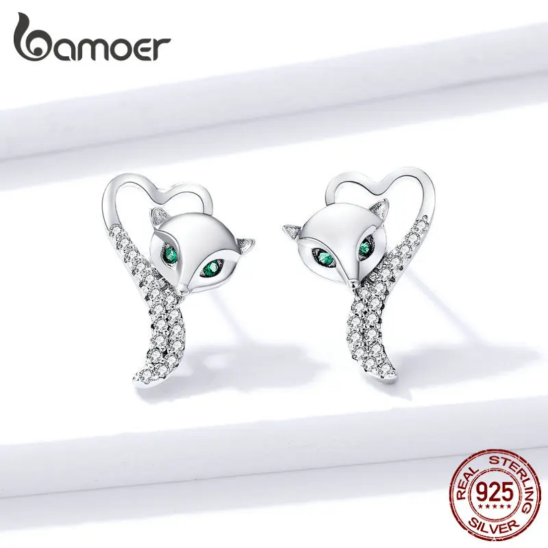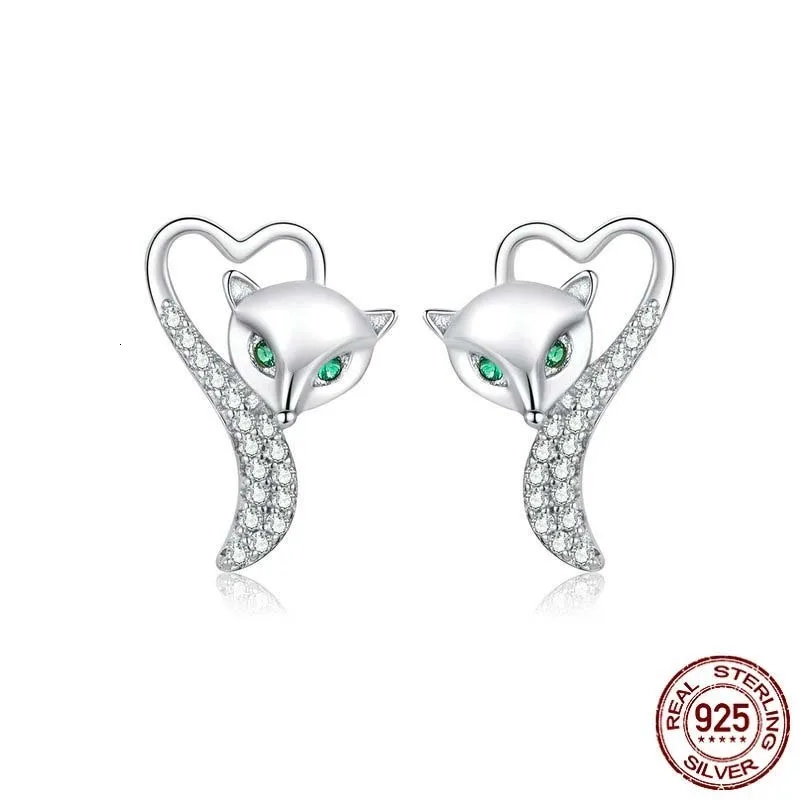 Best Quality Silver 925 Heart Fox Animal Stud Earrings for Women 925 Sterling Silver Clear CZ Statement Jewelry