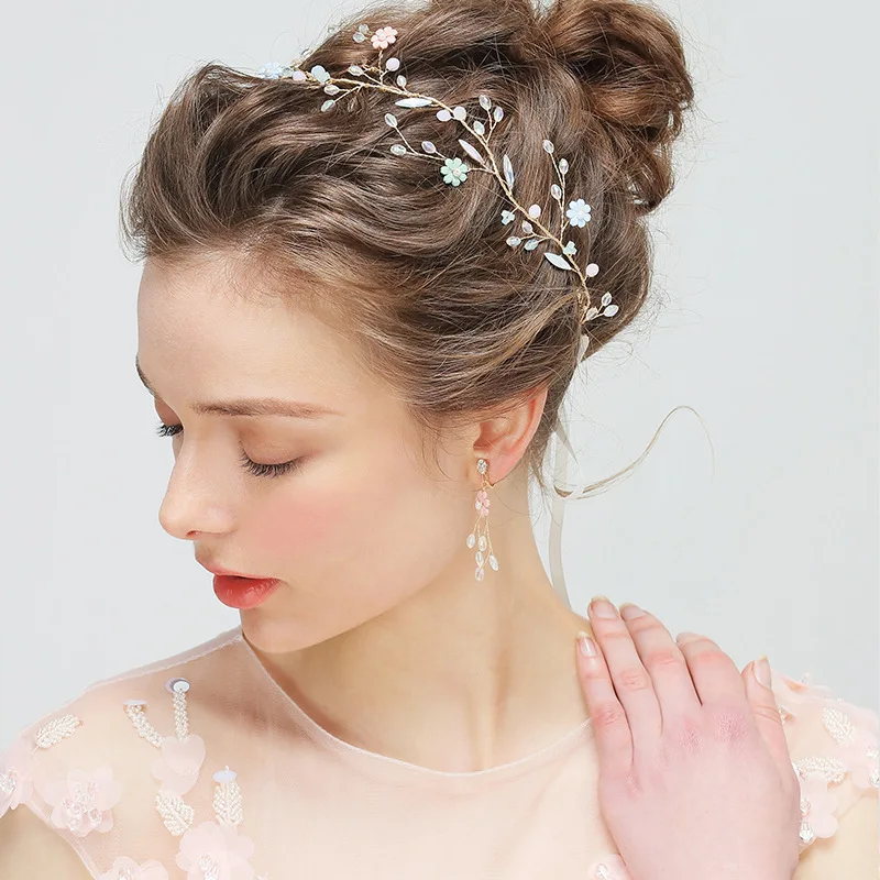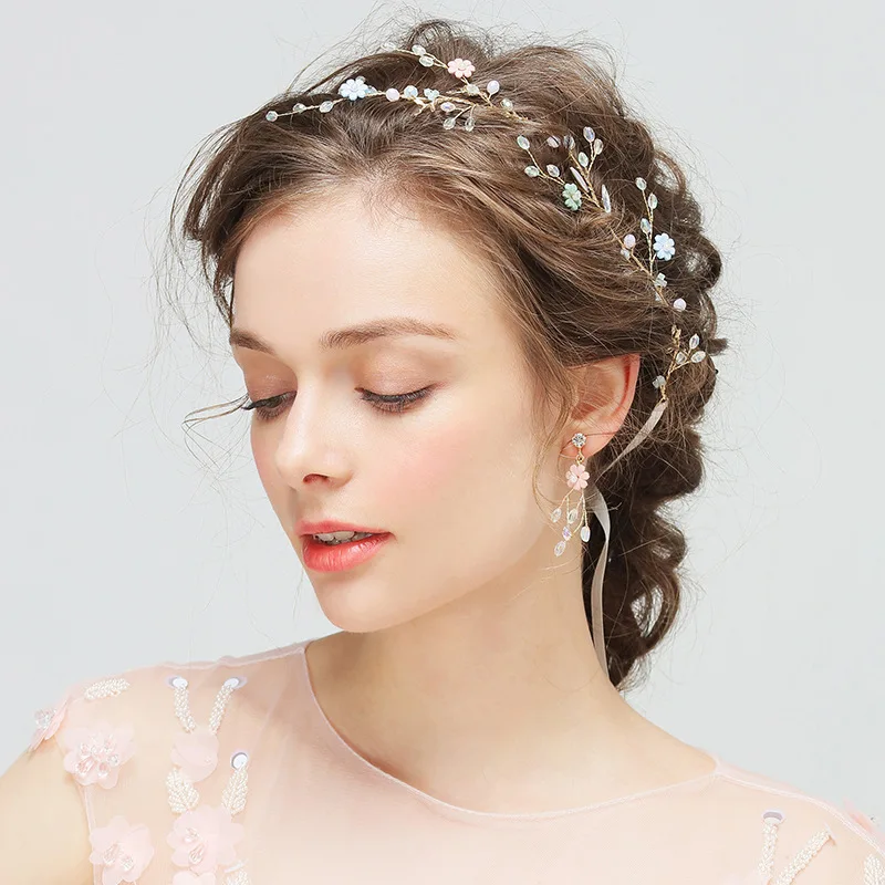Romantic Bridal Wedding Headpiece Handmade Hairband Earrings Set Small And Exquisite New Style Crys