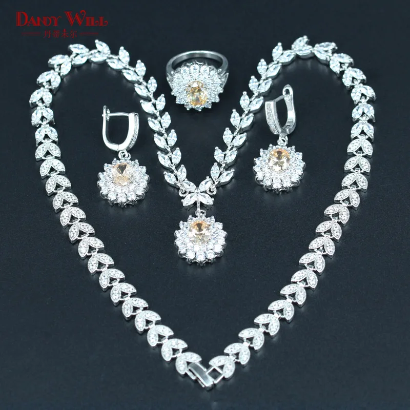 DANDY WILL Orange Morganite White Zircon Bridal Jewelry Set For Women Wedding Silver color Pendant/