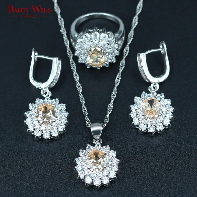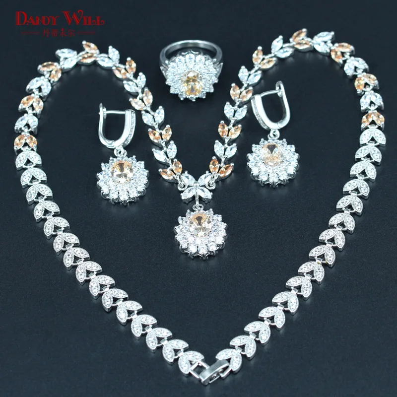 BEST SELLER DANDY WILL Orange Morganite White Zircon Bridal Jewelry Set For Women Wedding Silver color Pendant/