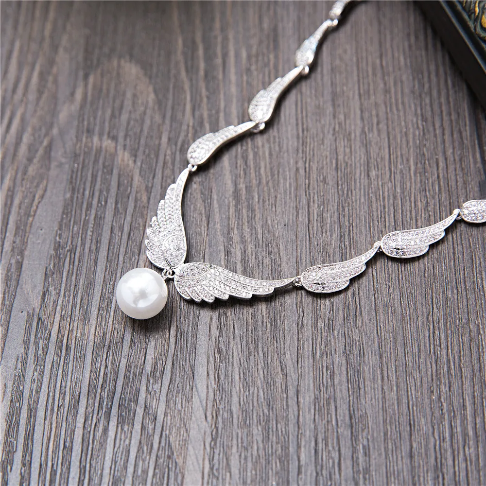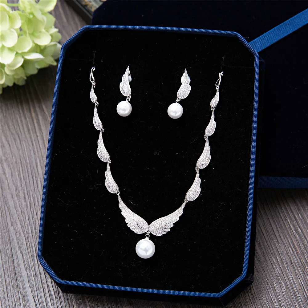 BEST SELLER Women Cubic Zirconia Wedding Jewelry Sets Leather Wing Necklace Earrings Elegant Briedes Accessorie