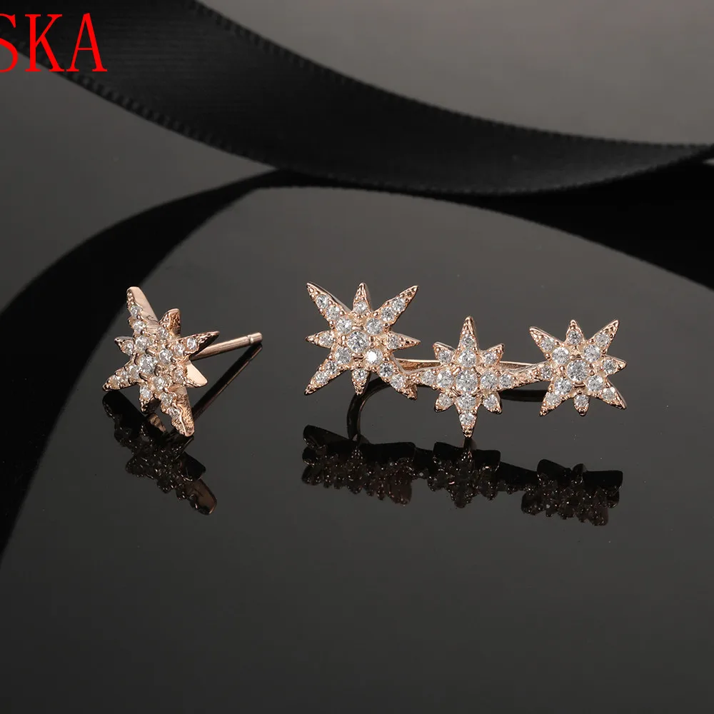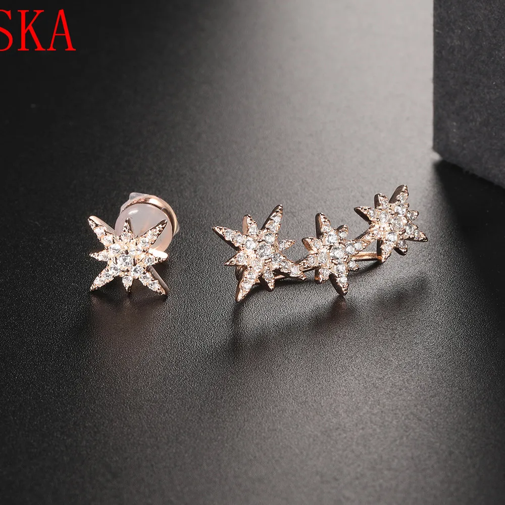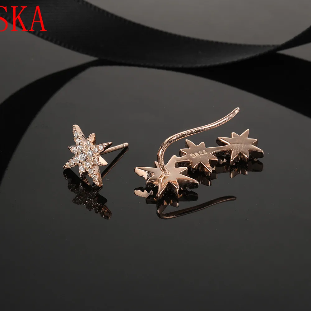 HIGH QUALITY SKA New Asymmetric Rose Gold Star Meteor Earrings Women Fashion Korean Temperament Earring Jewelry