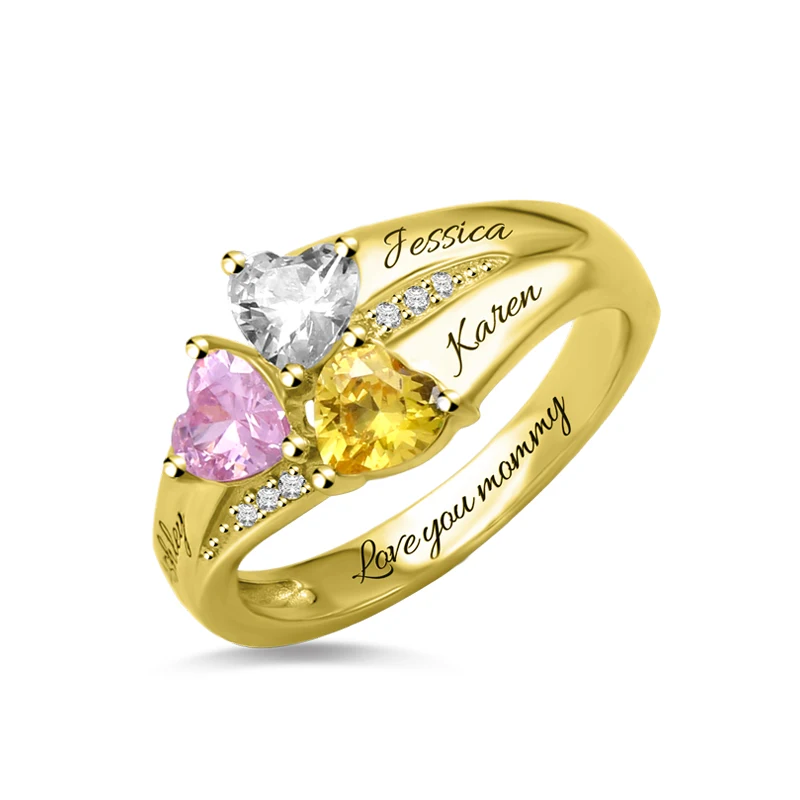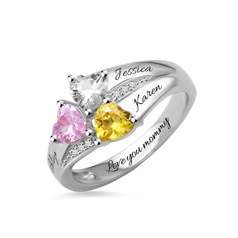 BEST Wholesale Personalized 3 Names Ring Heart Birthstone Ring Engraving Ring Love Anniversary Jewelry G