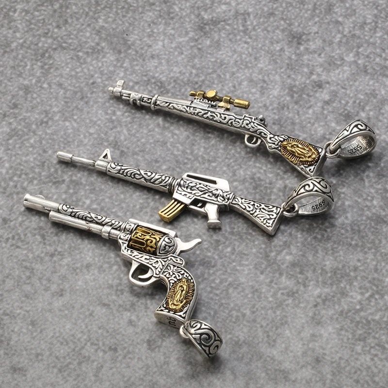 925 Sterling Silver Pendant Vintage Pendant Men's personality originality pistol pendant fashion Si