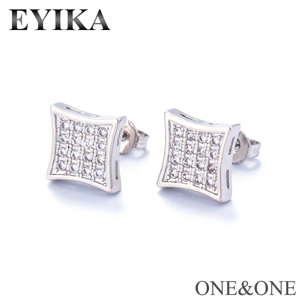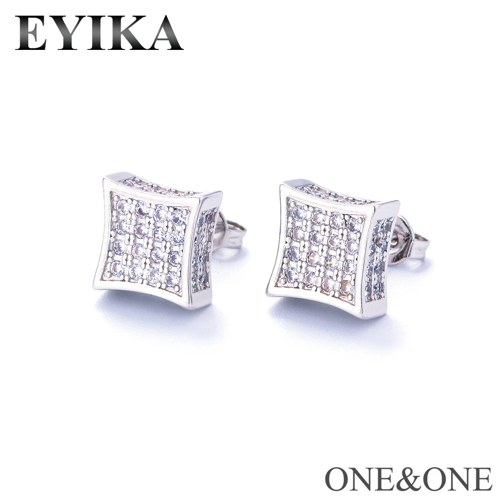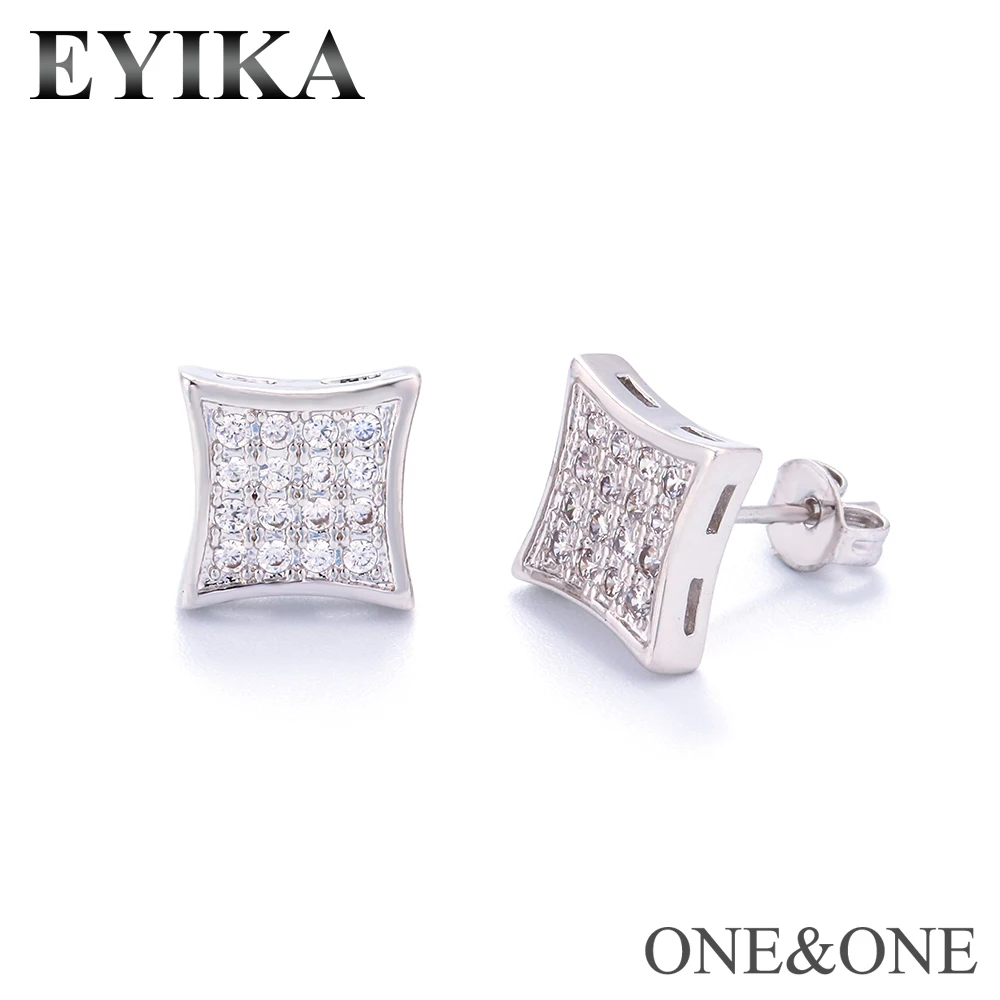 ORIGINAL Hiphop Jewelry Silver color AAA Cubia Zirconia Stud earring Square 10x10mm 4 Row stones Luxury Jewe