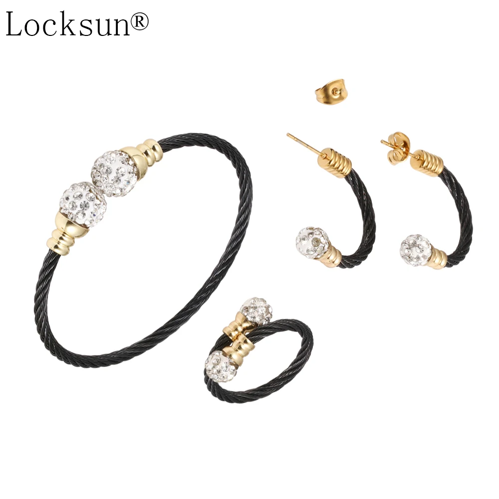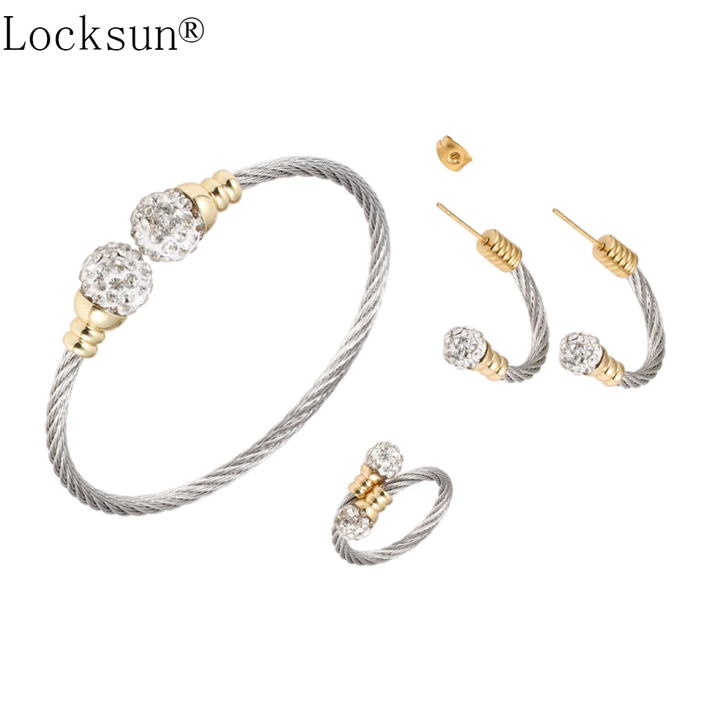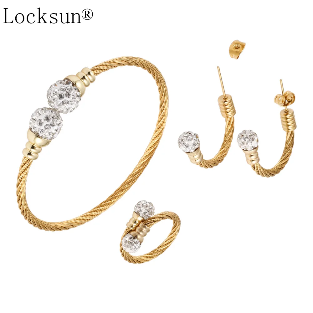 Hot Sale Locksun New Women Fashion Jewelry Sets Stainless Steel Open Adjustable Rings Bangles Set Gold Weddi