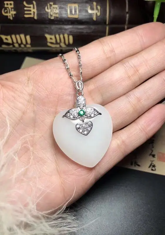 Koraba Fine Jewelry China's Unique Fashion Natural White Jade Carved Heart Shape Pendant Necklace F