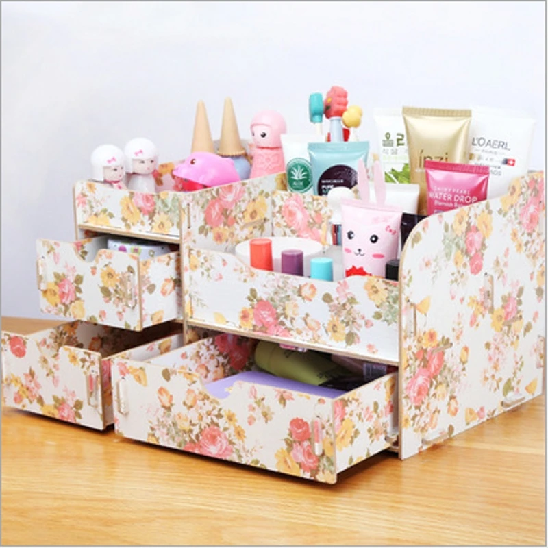 High quality Fashion Beautiful Household Woodiness Desktop Storage box DIY Assembly Cosmetics Stati