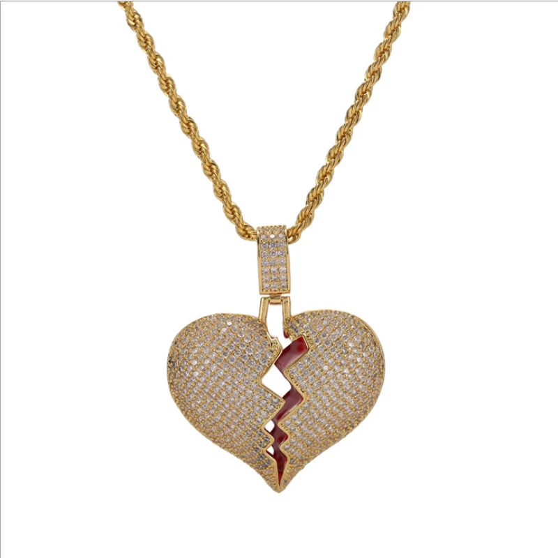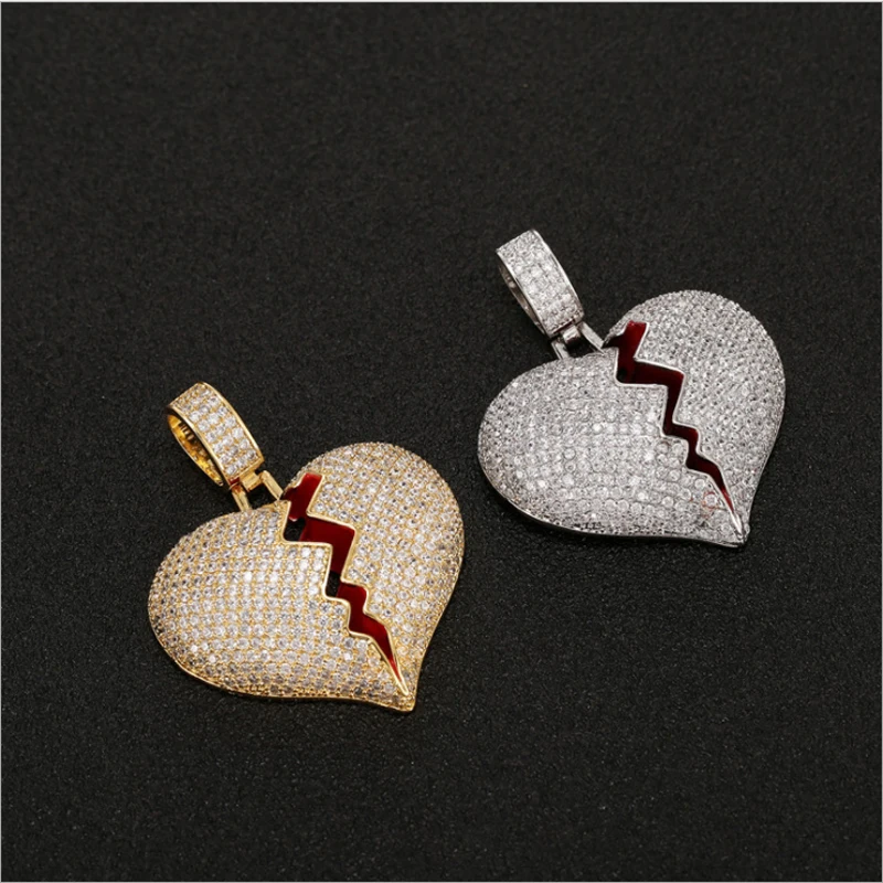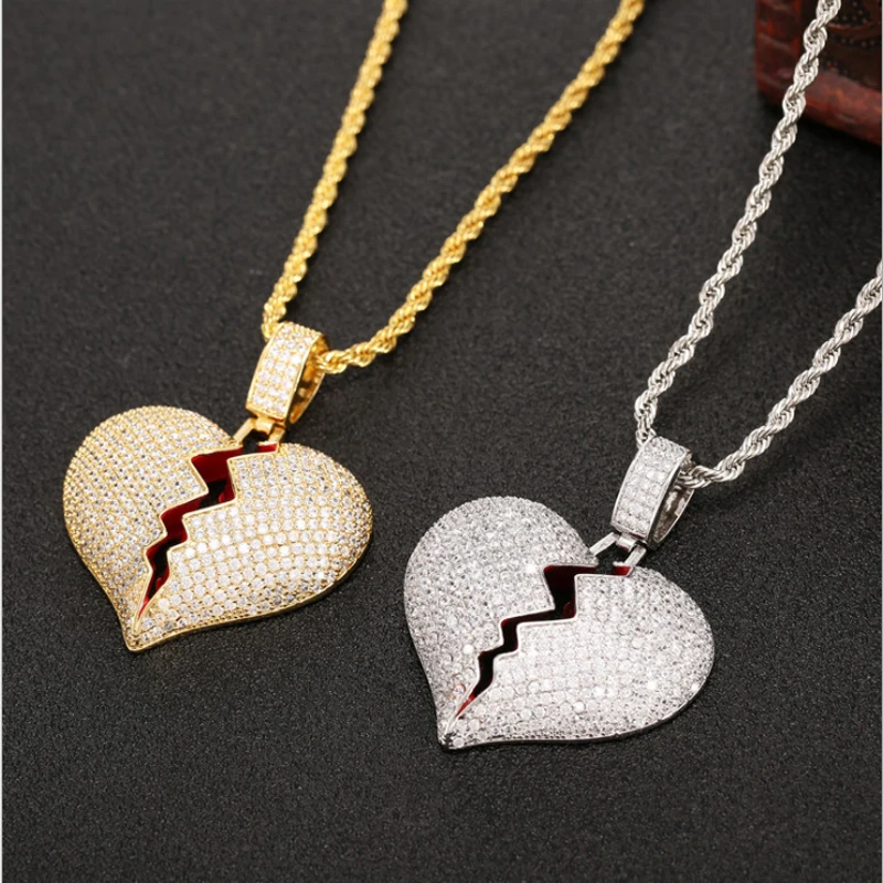 REVIEW TOP SELLER Exquisite broken heart type two-color pendant AAA shiny small zircon hiphop men and women necklace