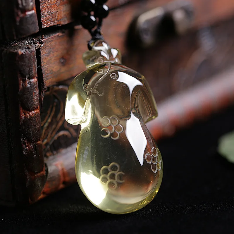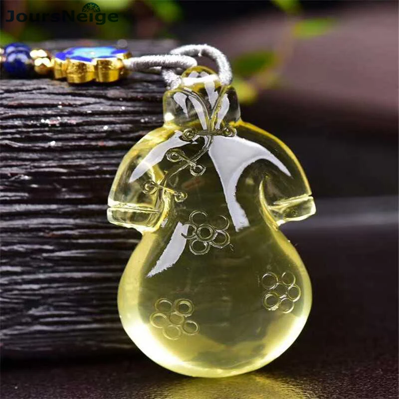 JoursNeige Yellow Vintage Cheongsam Natural Crystal Pendants Sweater Chain Necklace Lucky for Women