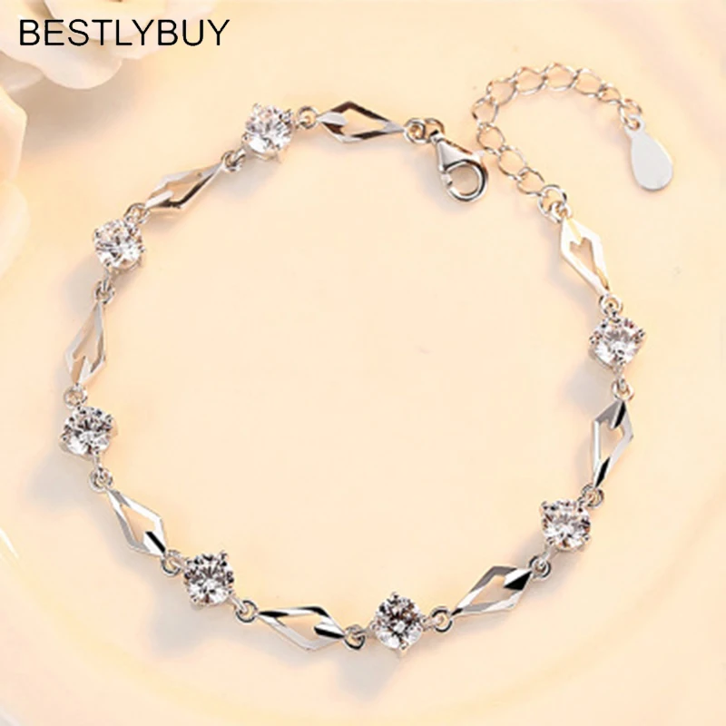 REVIEW TOP SELLER Original 925 Sterling Silver Bracelet For Women Geometric Hollow Round Clear Zircon Crystal Charm B