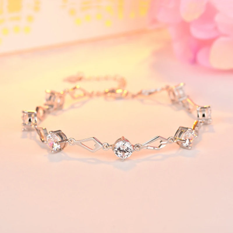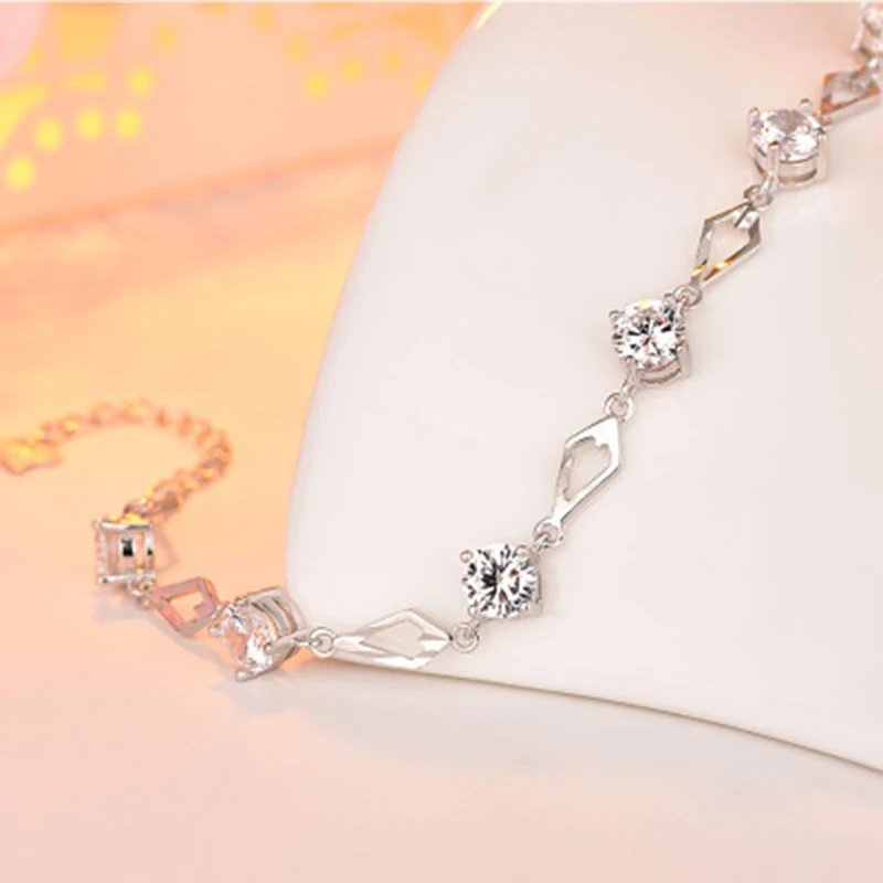 Original 925 Sterling Silver Bracelet For Women Geometric Hollow Round Clear Zircon Crystal Charm B